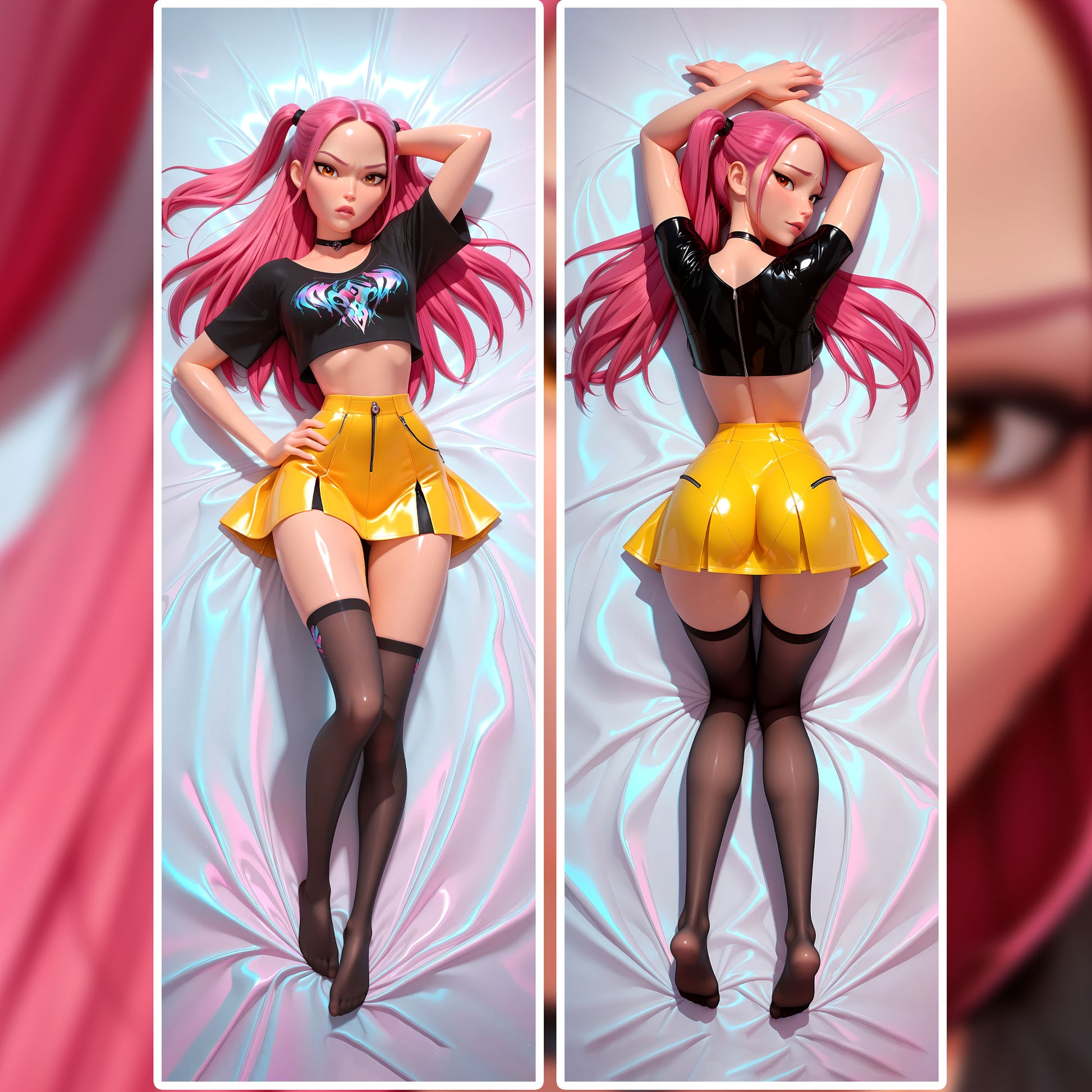 Channel the bold power and unstoppable spirit of Kira, the electrifying K-Pop demon hunter, with this exclusive, fan-made dakimakura cover! Featuring striking, high-resolution artwork on both sides, Kira’s confident presence and stylish design come to life in vibrant detail — perfect for fans who love strong, dynamic heroines.