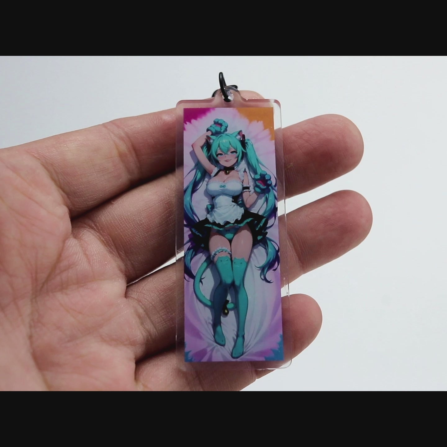 hatsune miku keychain, miku acrylic charm, vocaloid keychain, neko girl keychain, catgirl miku, anime acrylic charm, miku merch, vocaloid charm, kawaii keychain, cute anime keychain, ita bag charm, otaku merch, anime gift, collectible keychain, chibi miku, anime bag charm, fan art acrylic charm, vocaloid collectible, anime accessories